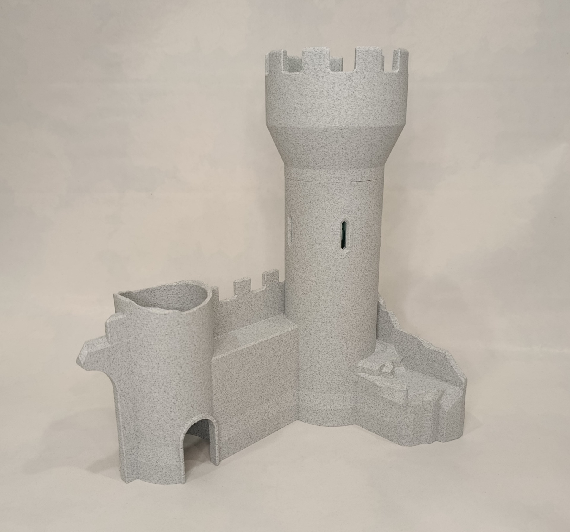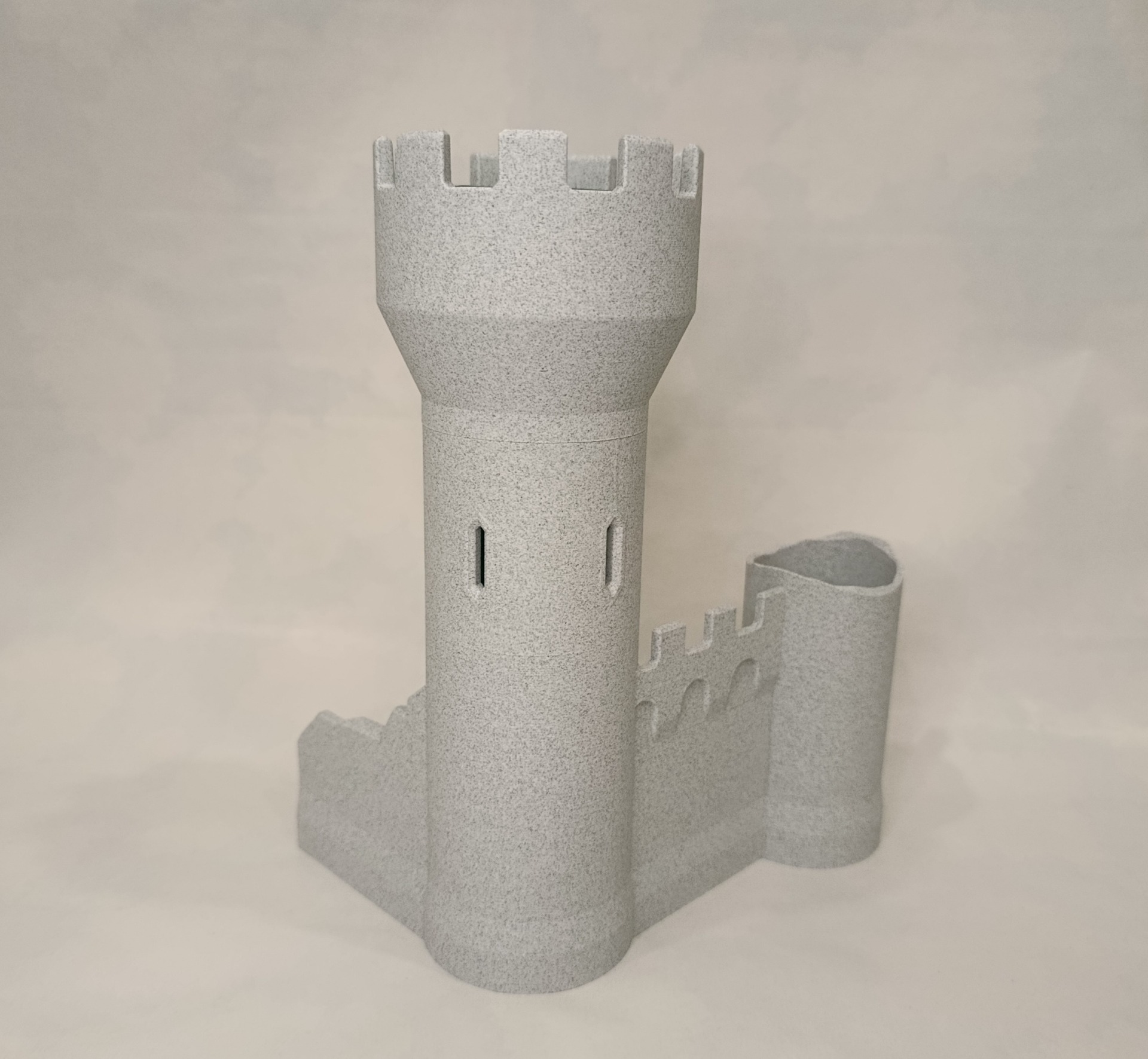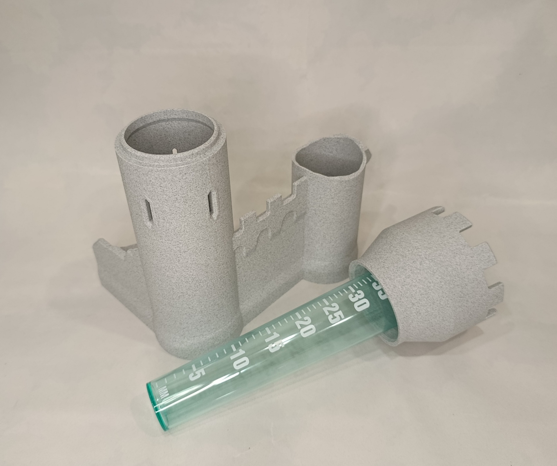 Věž má odnímatelnou horní hradbu pro snadné měření a následné vylévání dešťové vody.